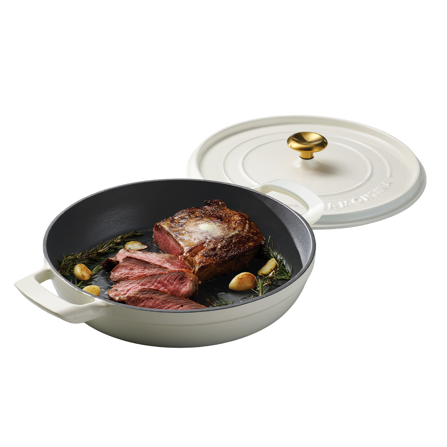Para un máximo control y seguridad, la sartén está equipada con dos robustas asas laterales que permiten un agarre firme al moverla de la placa al horno o a la mesa. La sólida tapa de hierro fundido incorpora un elegante pomo de acero inoxidable y está diseñada para conservar la humedad y el sabor, logrando resultados jugosos y llenos de sabor.